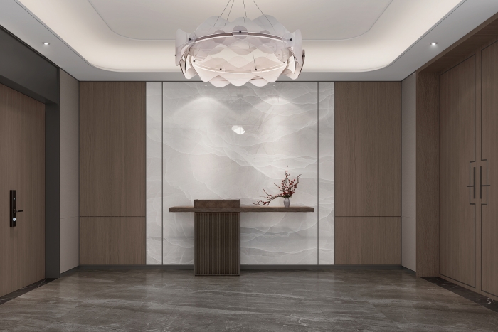 该案例为度假酒店内部办公楼装修。意图打造一个宁静素雅的办公空间,没有张扬的艳丽也没有色彩的繁冗,有的只是处处透露的清新和淡雅,主要用到的材料有木饰面、艺术漆、装饰铁艺、大理石及装饰竹席等,充分使用东方的元素打造出一个沉稳内敛的氛围,装饰竹席和铁艺造型等装饰品将传统元素和现代元素相结合,以现代审美打造富有传统意味的空间。