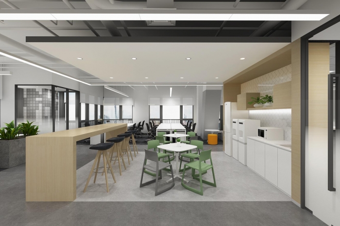 整个办公空间的设计以舒适为目的,让员工在这里办公的同时不会感到压抑,从而提高工作效率,此外,设计师还配以雅士白大理石铺贴,营造时尚、活跃的整体氛围以增强空间的视觉美感。为了进一步提高空间的品质,也为了提供给员工及客户一个舒适的环境,设计师打造了半开放式洽谈区,在此处洽谈沟通不失为一种享受