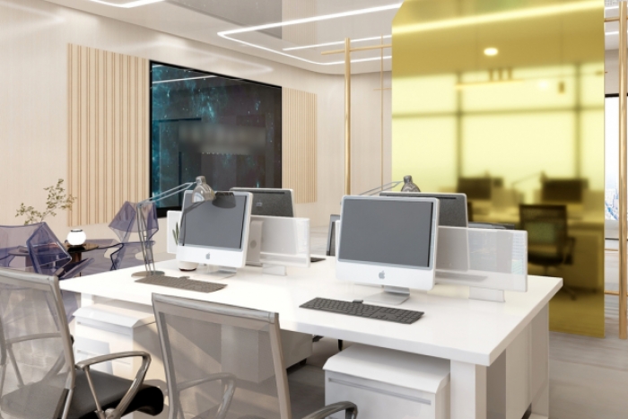 科技型企业。设计团队以现代简约风格为核心,旨在打造一个既高效又舒适的办公环境。 现代简约风格强调空间的合理利用和功能性布局。通过去除多余的装饰和元素,使空间显得更加宽敞、明亮,同时满足员工日常工作的需求。