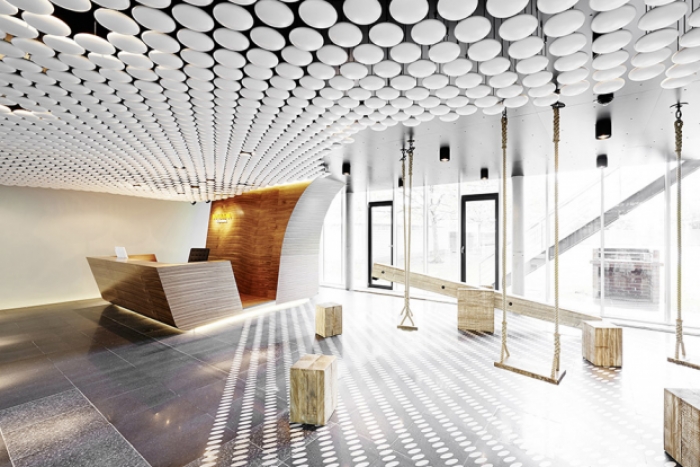 该办公室装修设计项目位于安徽合肥,采用创意型装修风格,色彩搭配丰富。内部运用开敞式办公空间成为主流设计,这种设计方法通过自然光与室内照明的巧妙结合,营造出宽敞明亮的工作环境。 本项目中,灯光设计在办公室装修中同样重要。设计师根据不同功能区的需求,采用不同类型的灯具和照明方式。