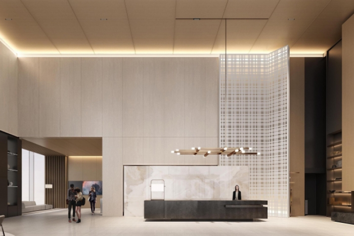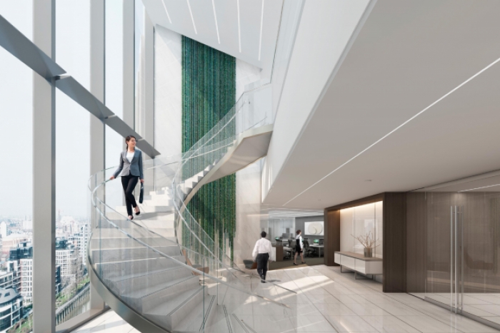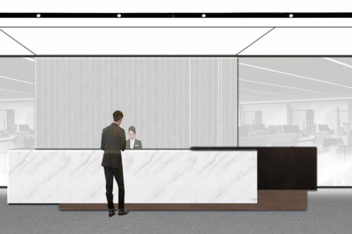 该办公楼装修设计中,接待大厅设计尤其重要,首先设计师根据企业需求和空间大小,合理规划空间布局,确保功能区域的设置既美观又实用;选用高品质的装饰材料,如大理石、高档涂料和精致的吊灯等,以提升整体质感;提供舒适的座椅、茶几和咨询台等家具,确保来访者的舒适度和满意度;采用柔和、自然的照明设计,营造舒适的接待环境。同时,设置适...