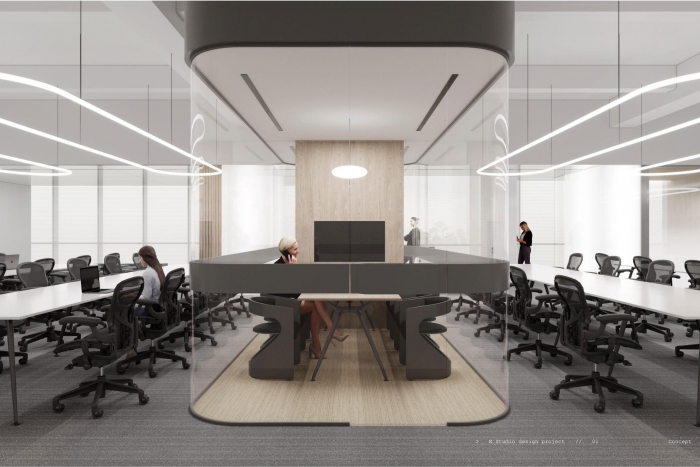 随着现代企业对于团队协作和沟通效率的重视,开放式办公室逐渐成为一种流行的办公空间设计。本次办公室设计采用一个具有创新、开放和高效特点的开放式办公室,旨在促进员工之间的交流与合作,提高工作效率。 本次开放式办公室装修首先打破传统办公室的封闭空间,创造一个开放、共享的办公环境;提供多样化的办公空间,满足不同团队和项目的需...