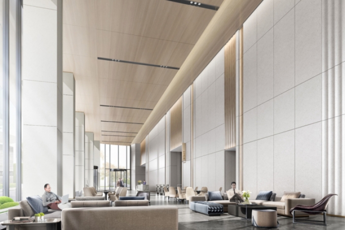 本次办公楼装修案例是对一栋现代化办公楼的公共大厅装修改造。该大厅是办公楼的核心区域,承担着接待来访者、展示企业文化和提供休息空间等多重功能。装修的目标是创造一个舒适、美观且具有品牌特色的空间,提升企业形象,同时满足员工和来访者的需求。精选办公楼装修风格,打造现代商务空间。