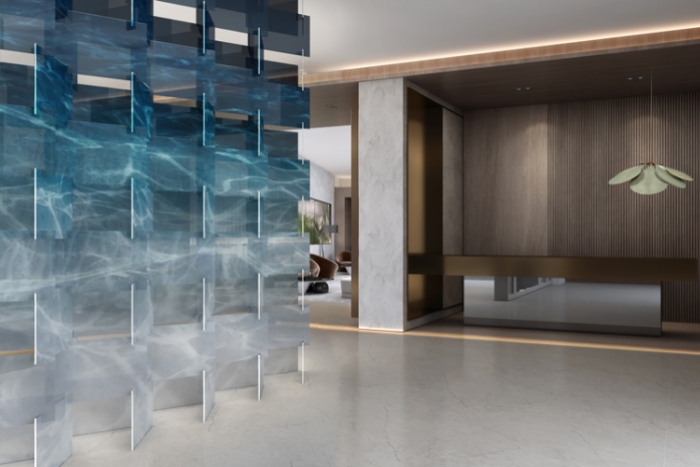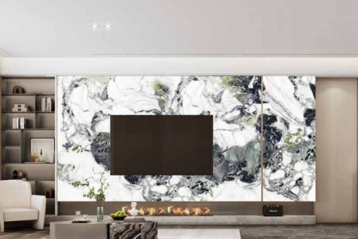 墙面采用黑色UV玻璃,内置LED拼接屏。